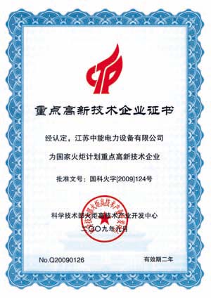 重点高新技术企业证书