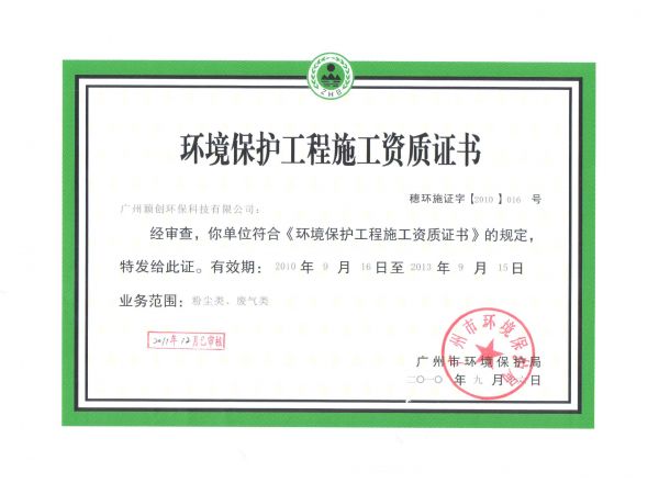 环境保护工程施工资质证书